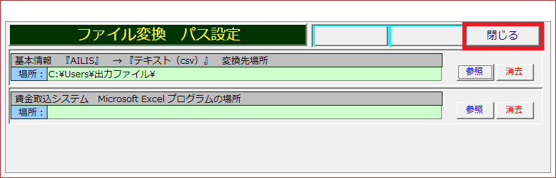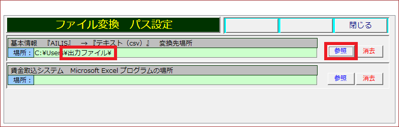 ③基本情報『AILIS』→『テキスト(CSV)』変換先場所の参照を選択します。