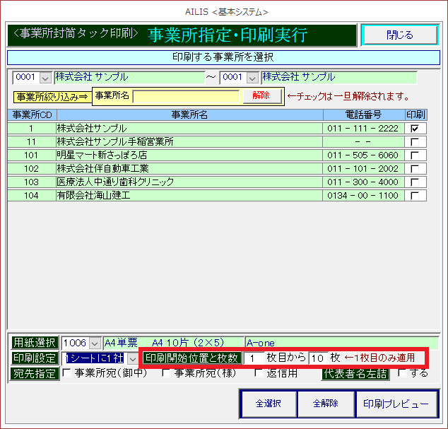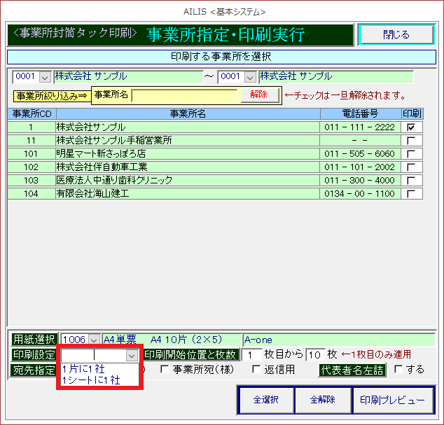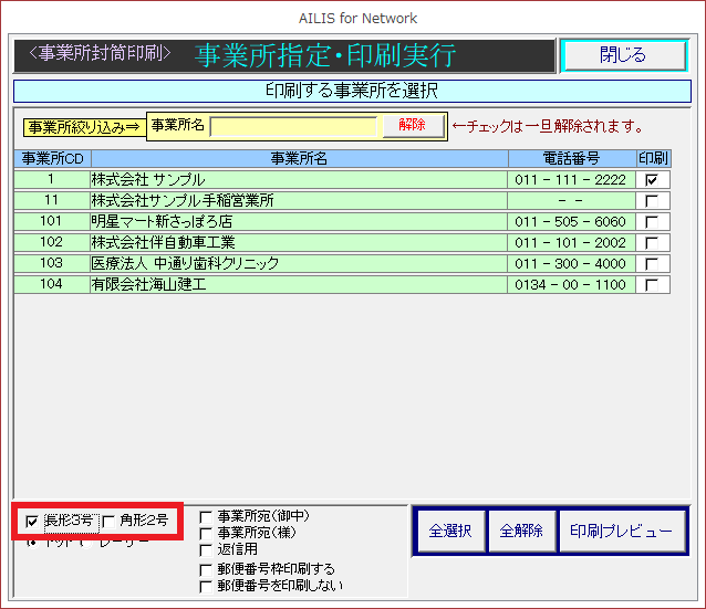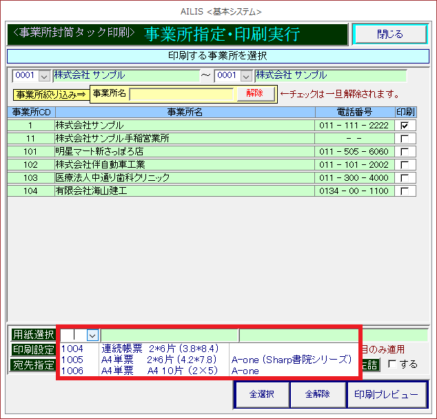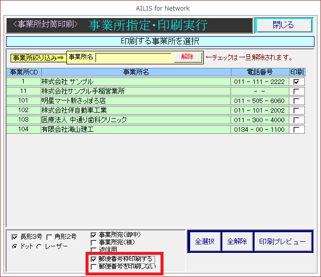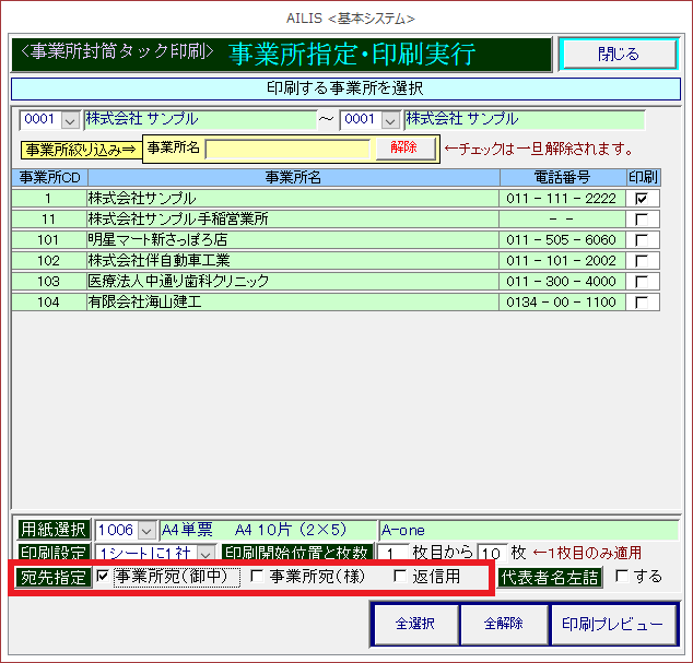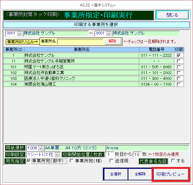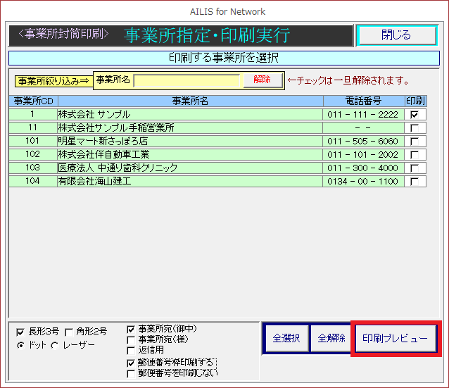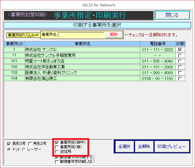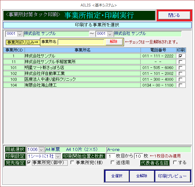 事業所宛名ラベル印刷