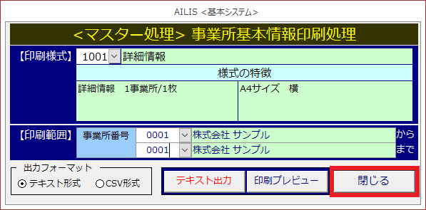 事業所情報をデータ出力・印刷する
