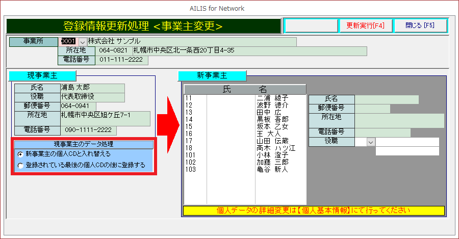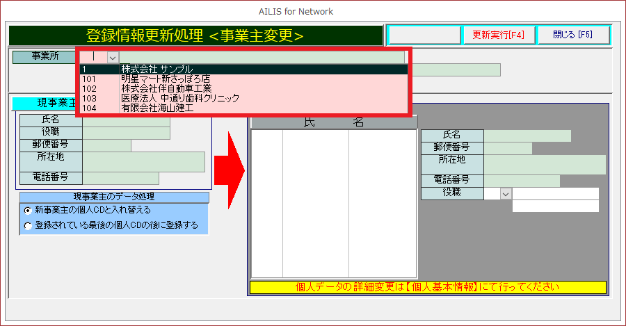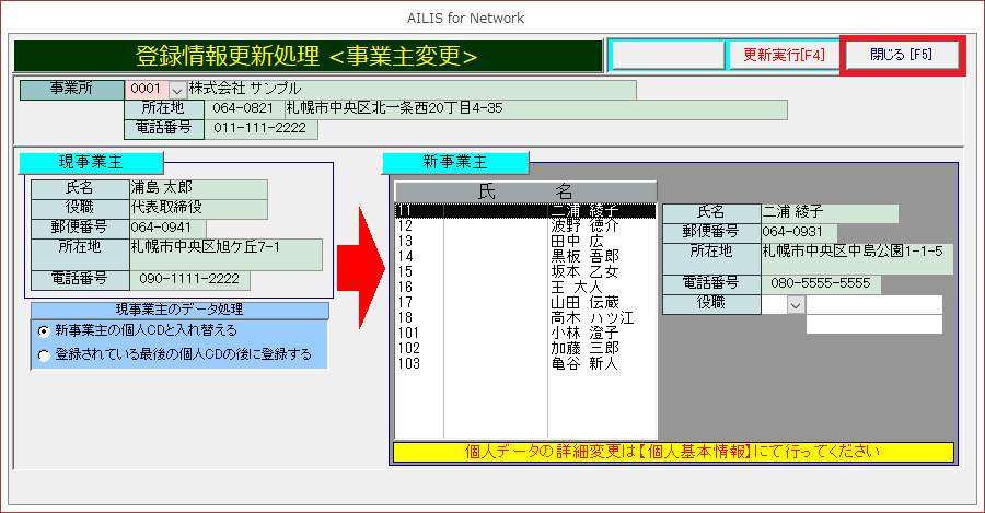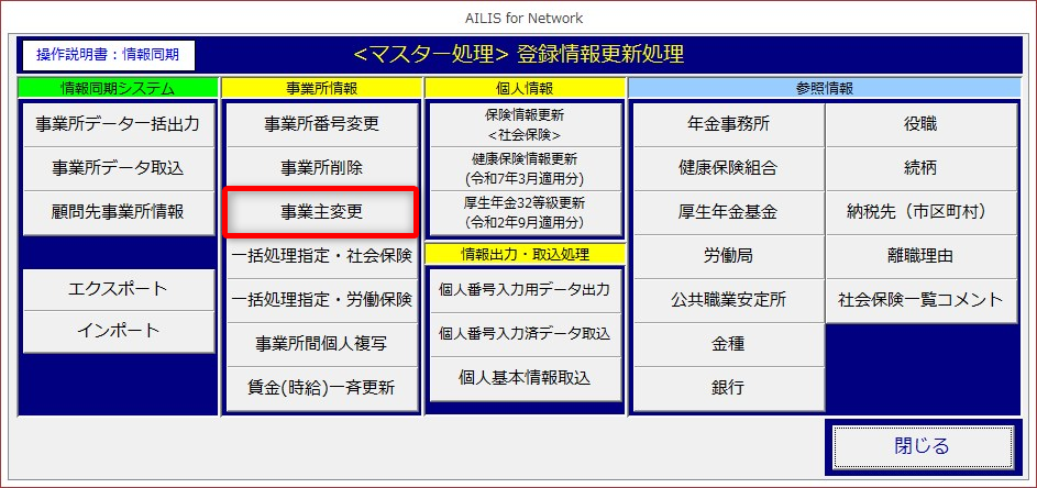 事業主変更の操作を紹介します。