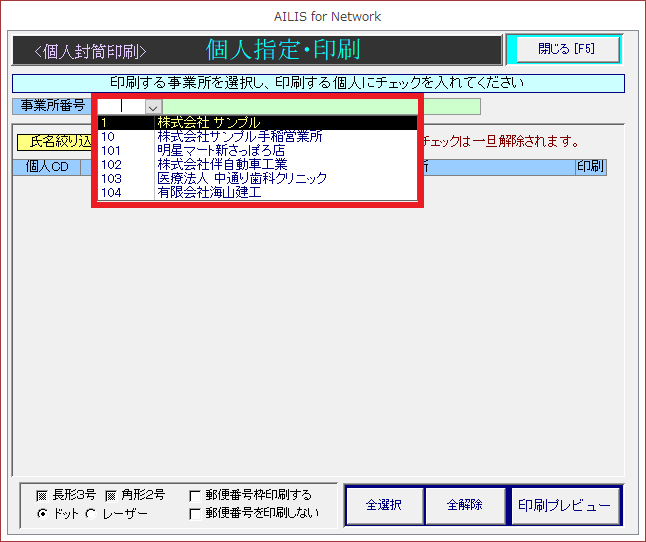 ③印刷する事業所を選択します。