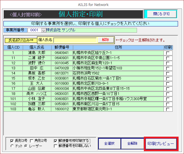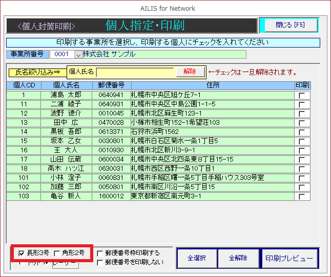 個人封筒宛名印刷