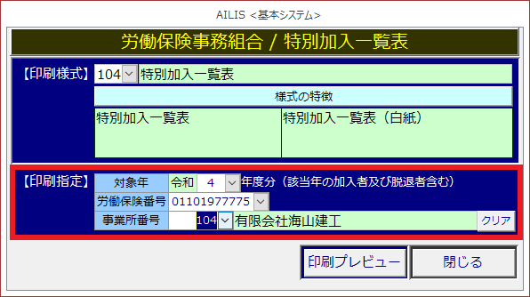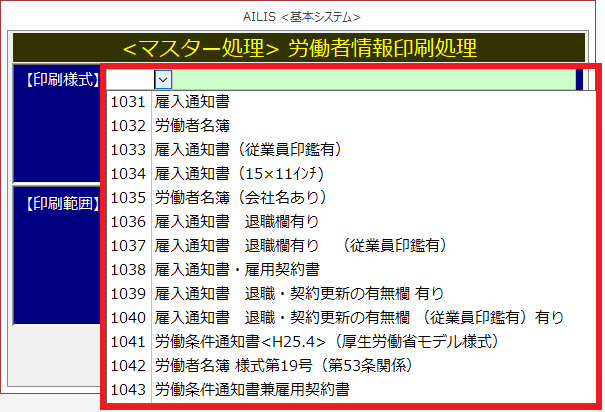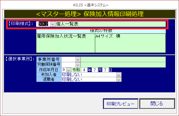 [印刷様式]は1種類のみのため、選択できません。