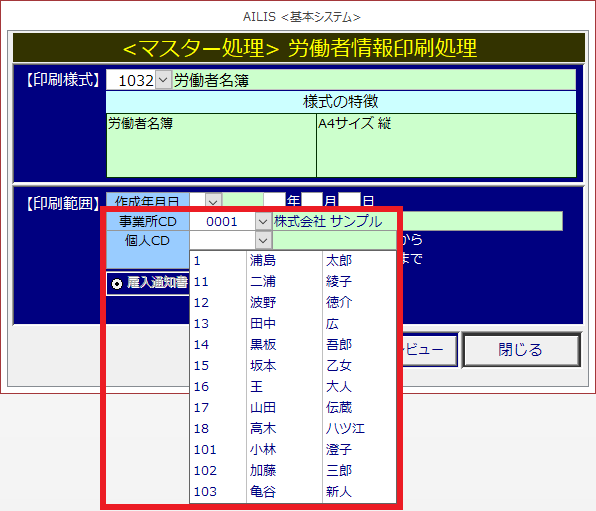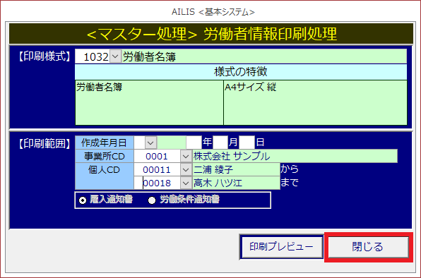 労働者名簿を印刷するための様式です。