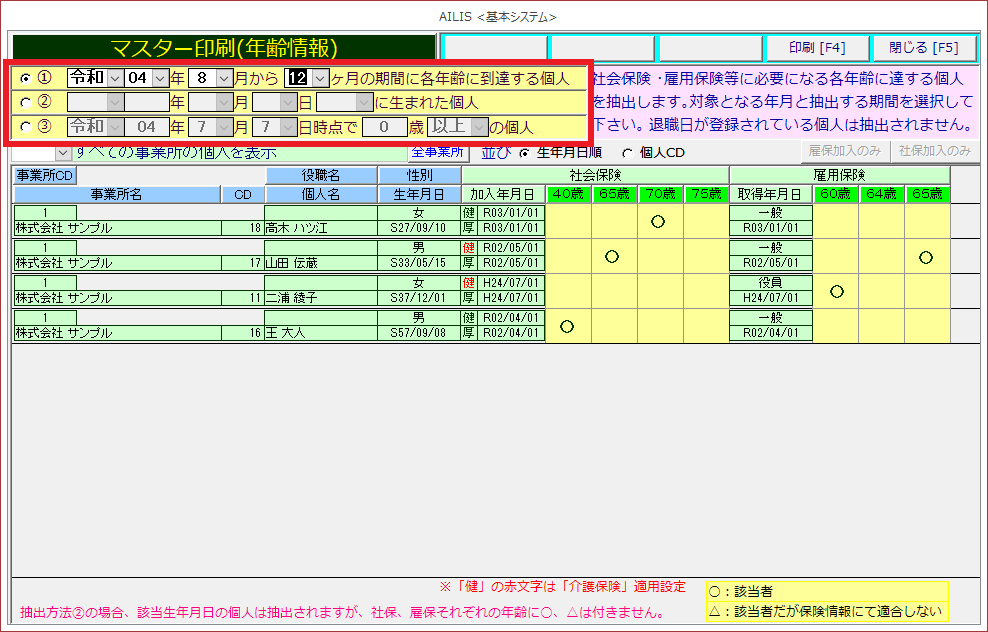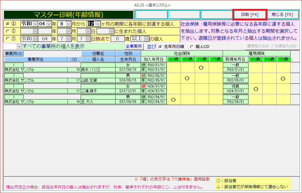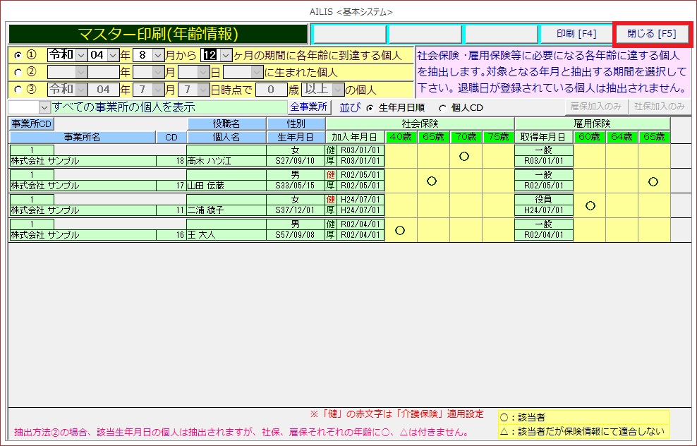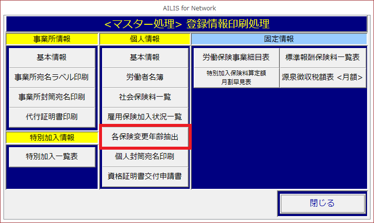 [各保険変更年齢抽出]を選択します。
