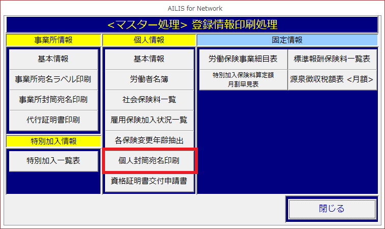 [個人封筒宛名印刷]を選択します。