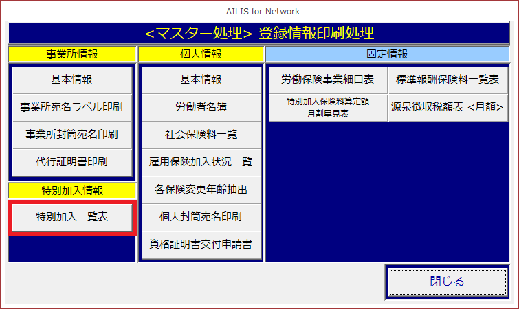 [特別加入一覧表]を選択します。