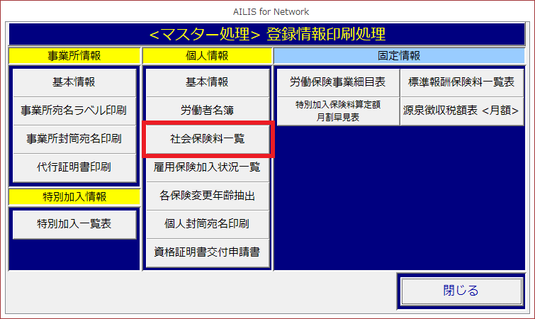 [社会保険料一覧]を選択します。