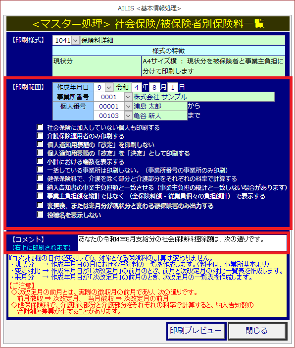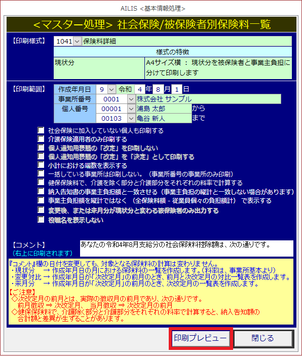 社会保険料の一覧を確認するための様式です。