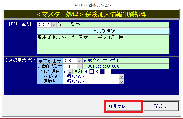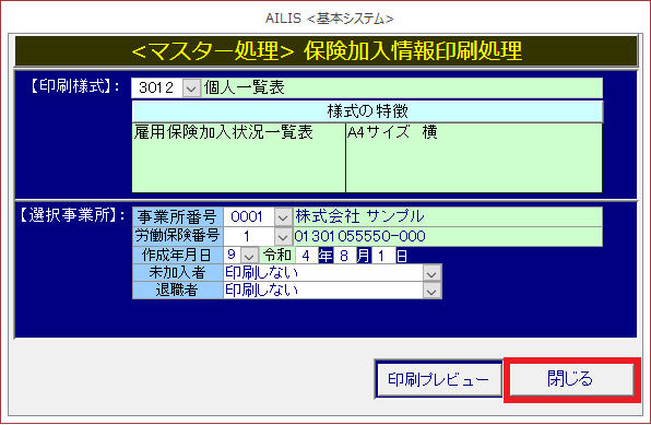 雇用保険の加入状況一覧を確認するための様式です。