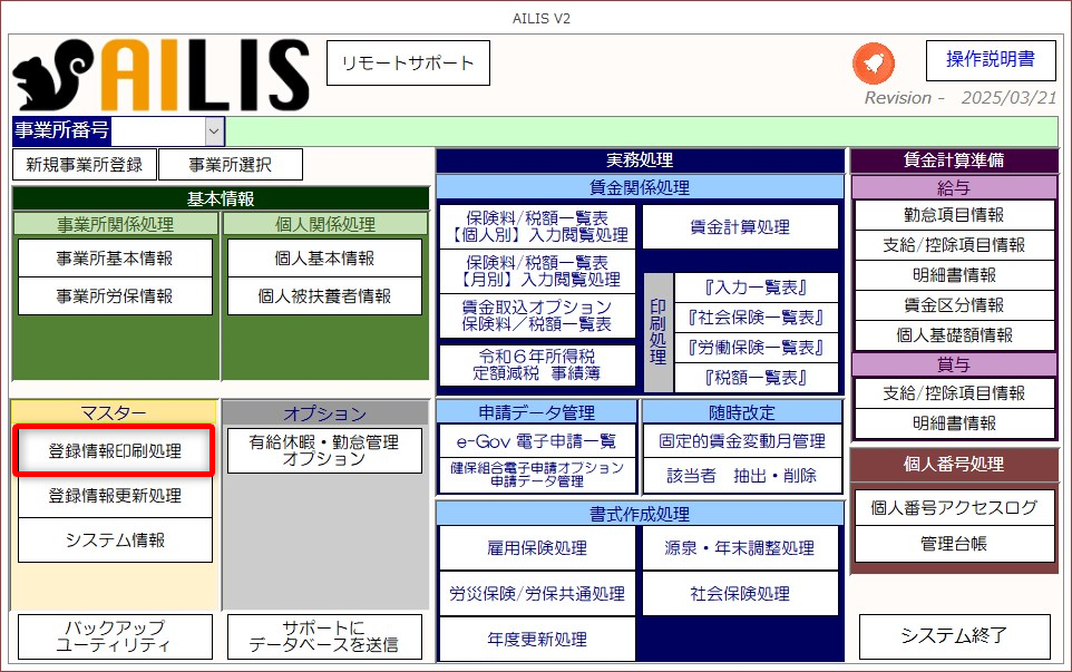 [登録情報印刷処理]を選択します。