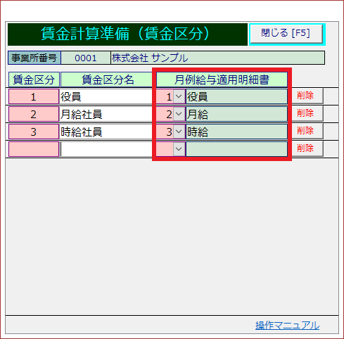 賃金区分情報の設定