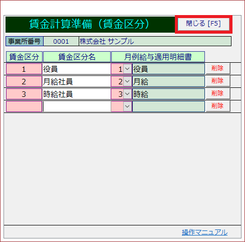 ②[賃金区分]を登録します。