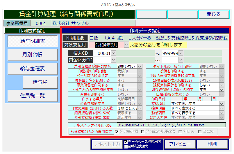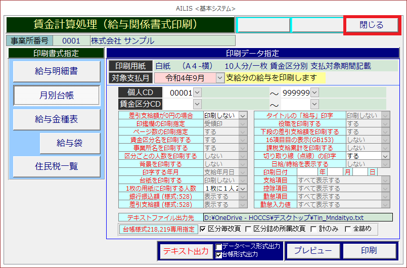 このページでは、賃金台帳・給与明細書を印刷方法を紹介します。