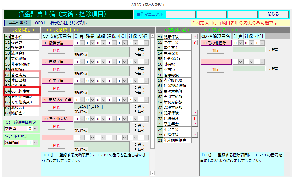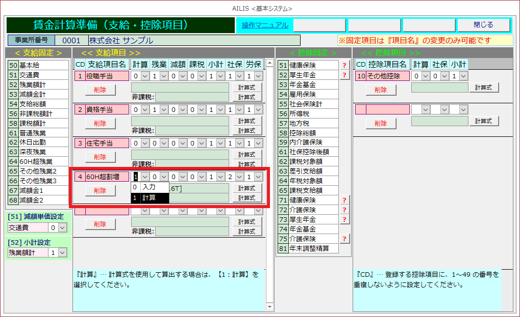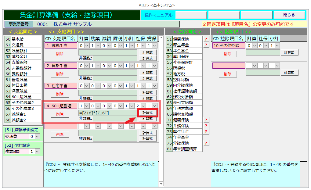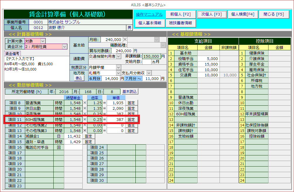 個人基礎額情報に単価を入力せず、計算式で割増賃金額を計算する方法