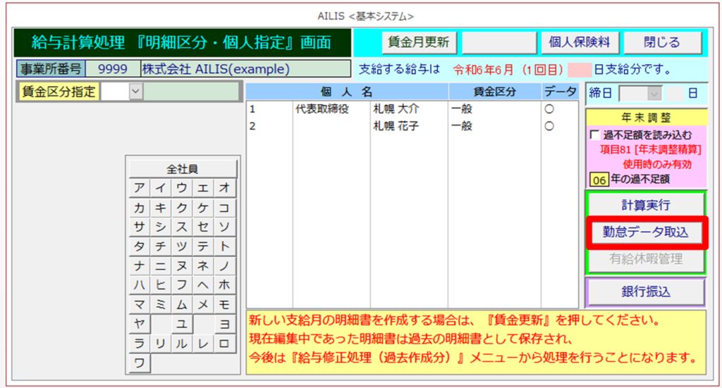 ※取込された勤怠を基に支給・控除額を計算するため
