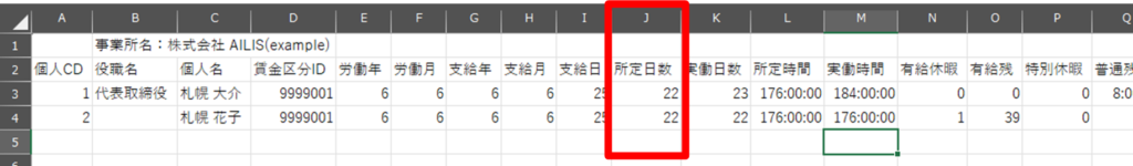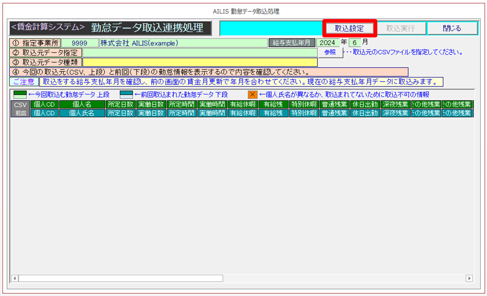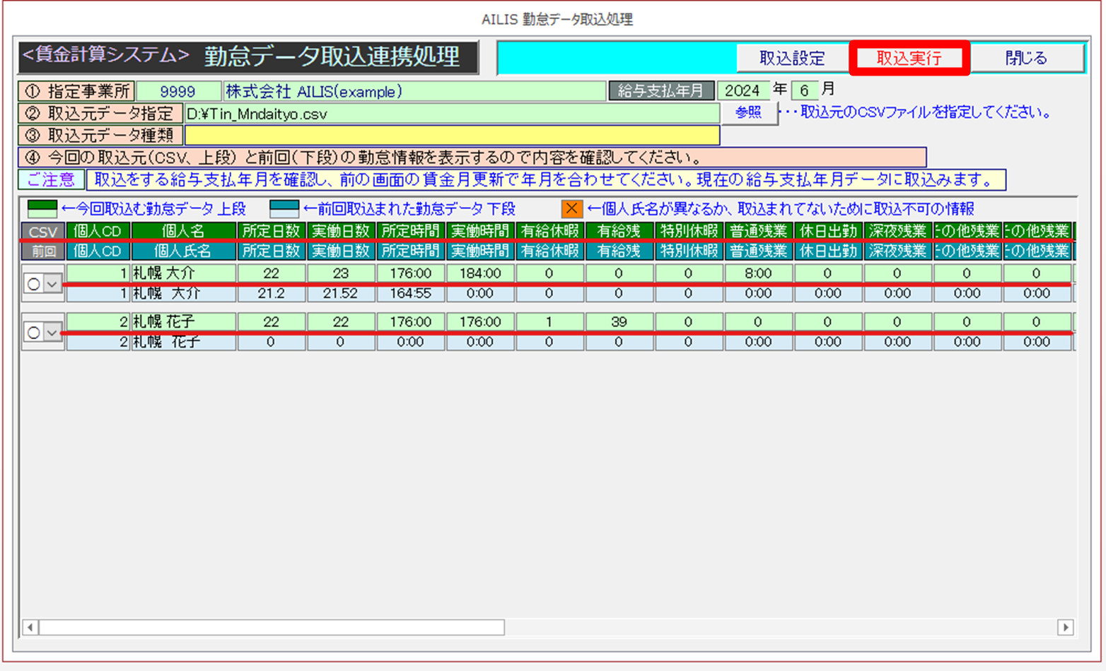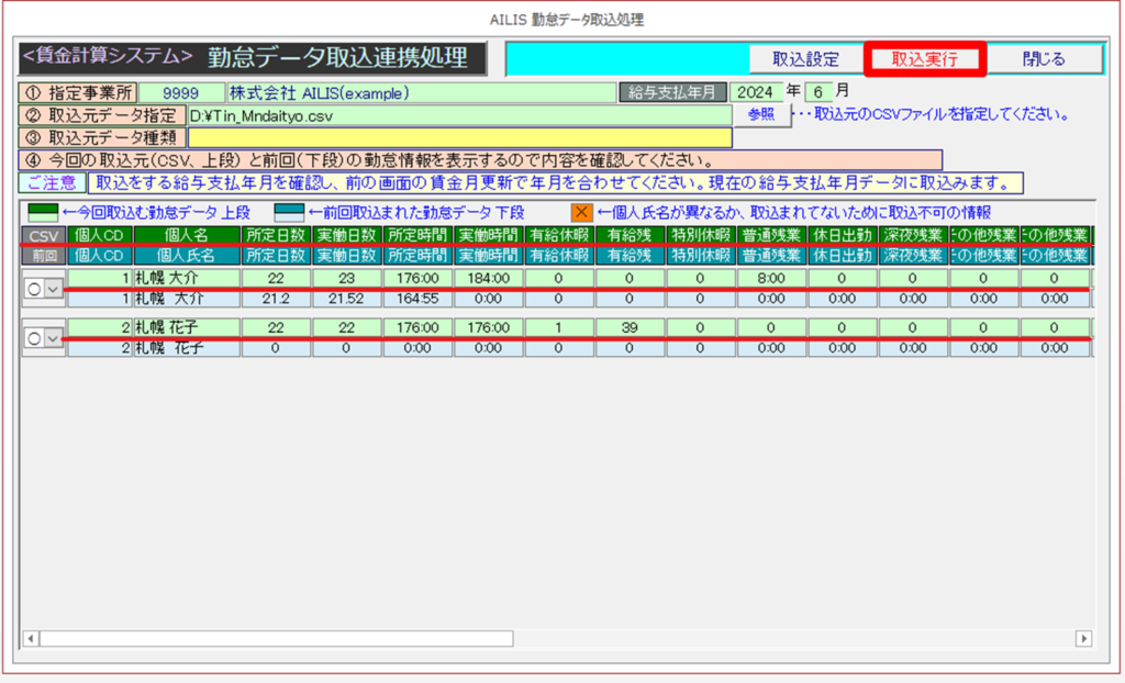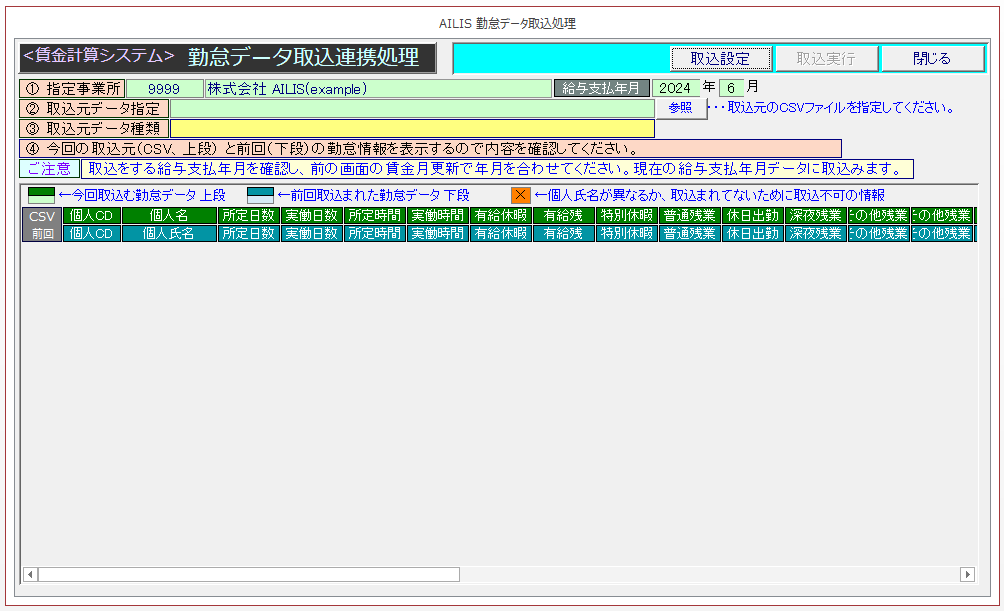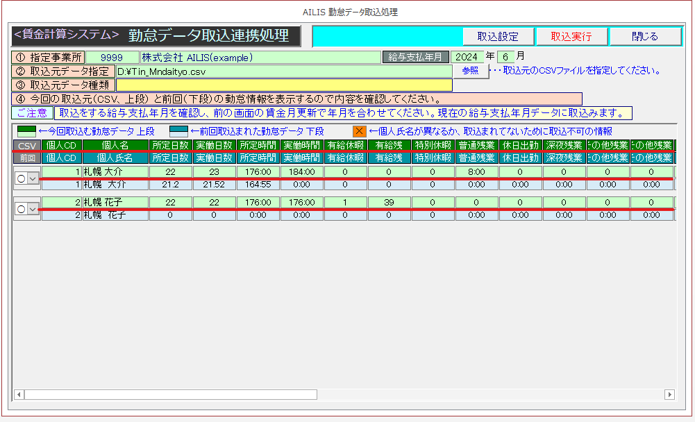 - 上段:これから取込する勤怠情報