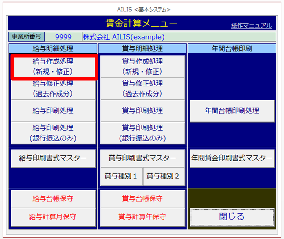 ②[給与作成処理(新規・修正)]を選択します。