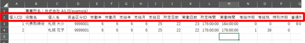 ※CSVデータとアイリスの勤怠項目名を一致させる必要はございません。
