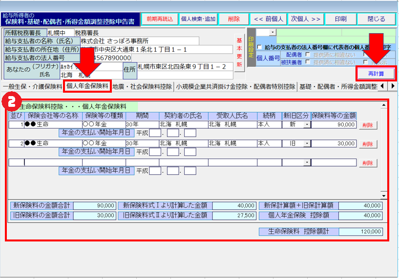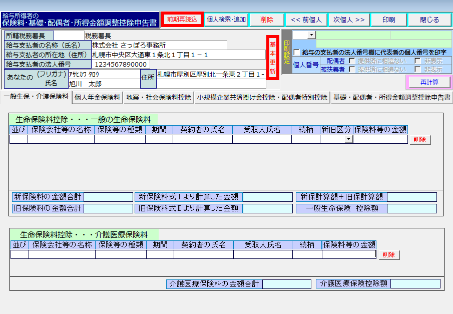 ※各項目の控除額を都度確認いただくため、タブ毎に[再計算]することを推奨します。