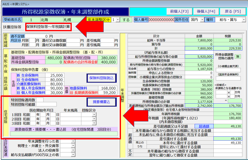 ③[保険料控除等~年税額計算]のタブを選択し、住宅控除の項目に(特定増改築)住宅借入金等特別控除申告書の内容を入力してください。