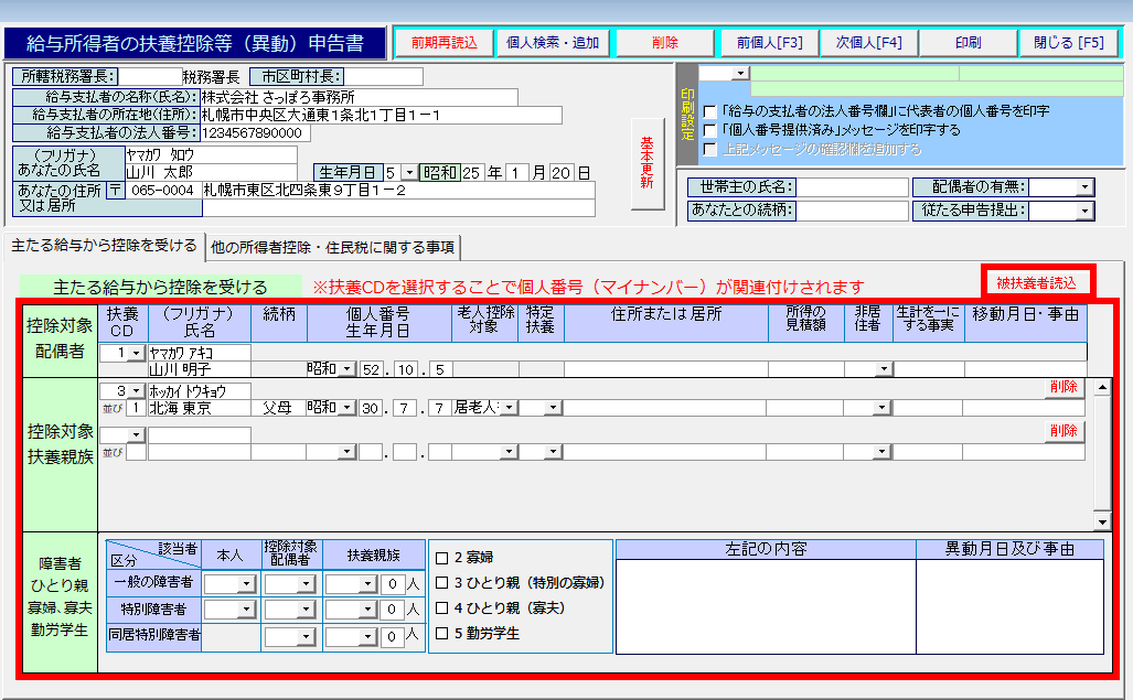 ※[個人被扶養者情報]の設定は下記を参照してください。