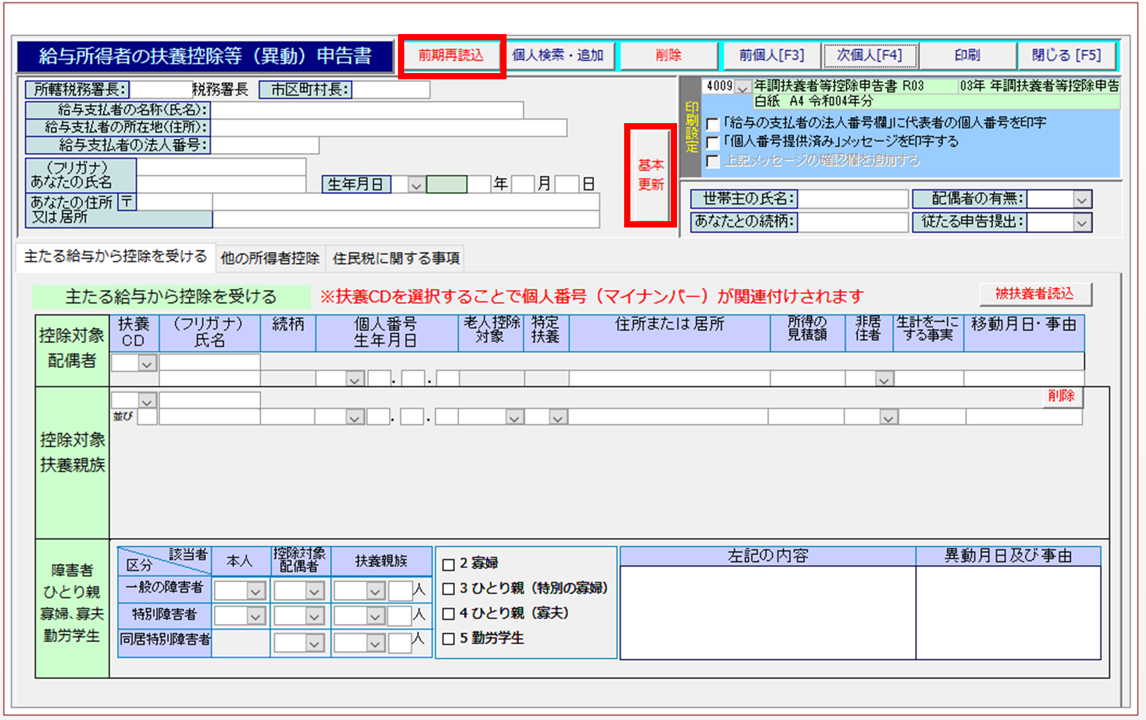 扶養控除等(異動)申告書の印刷