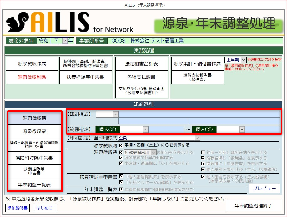 源泉・年末調整処理につきましては、国税庁の外部リンクもご活用ください。