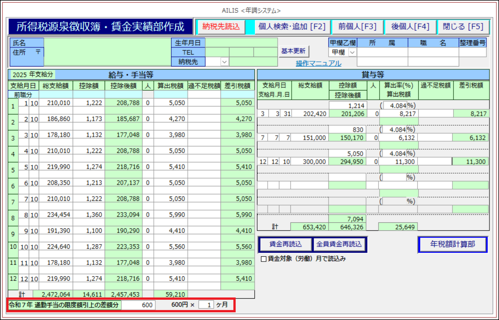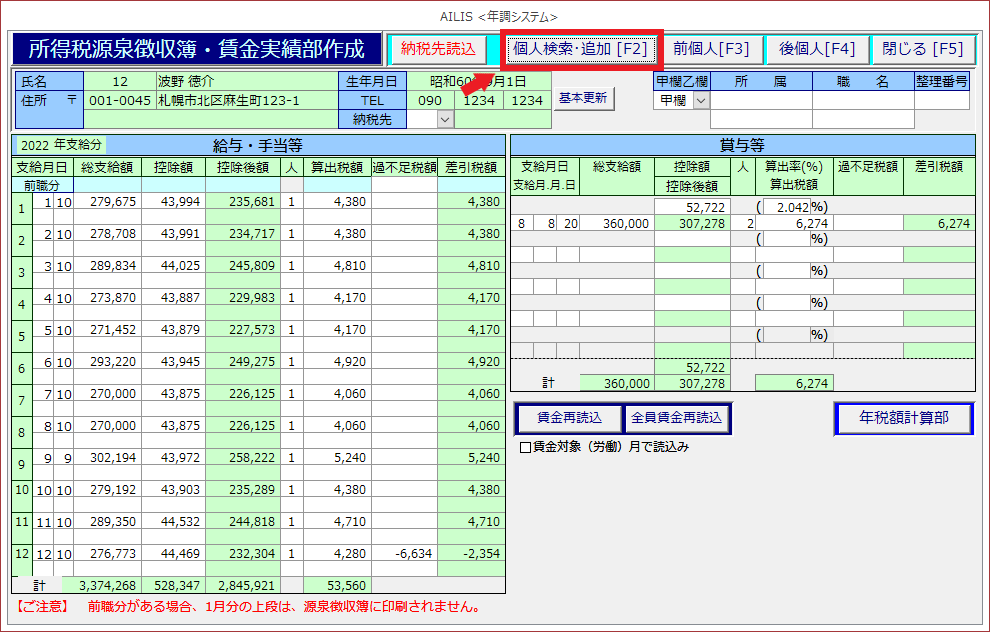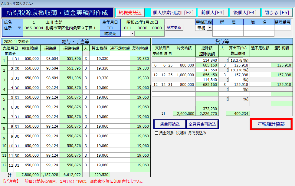 給与・賞与と徴収税額の集計