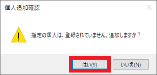 ③個人追加確認画面が開きます。[はい]を選択し、追加します。