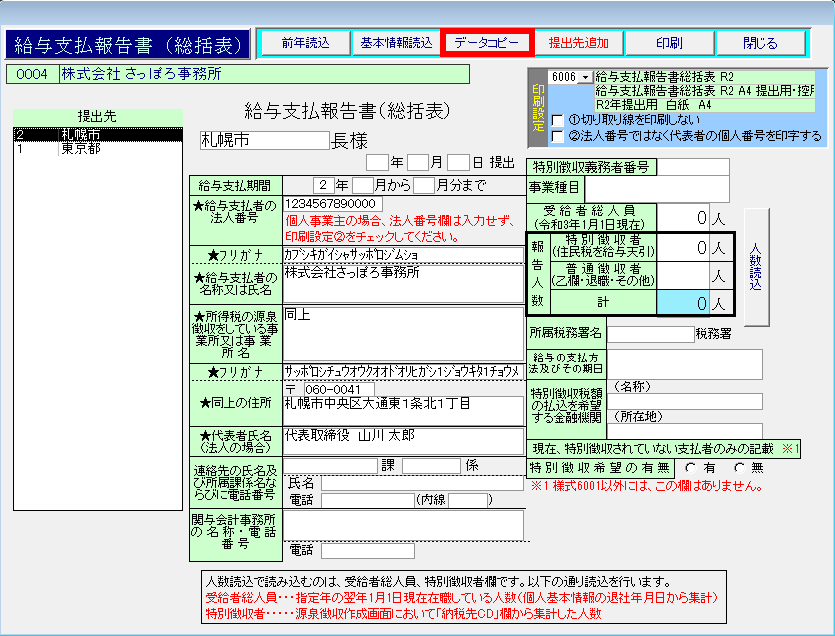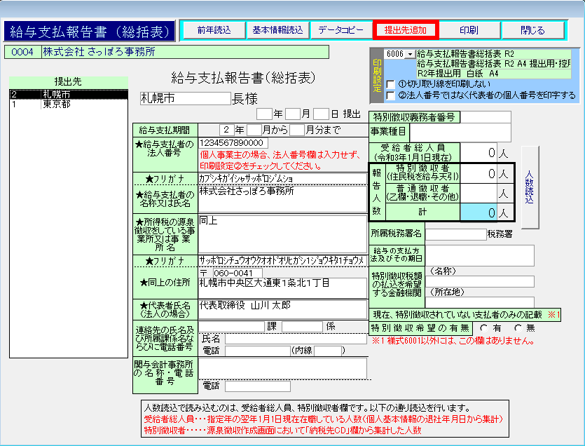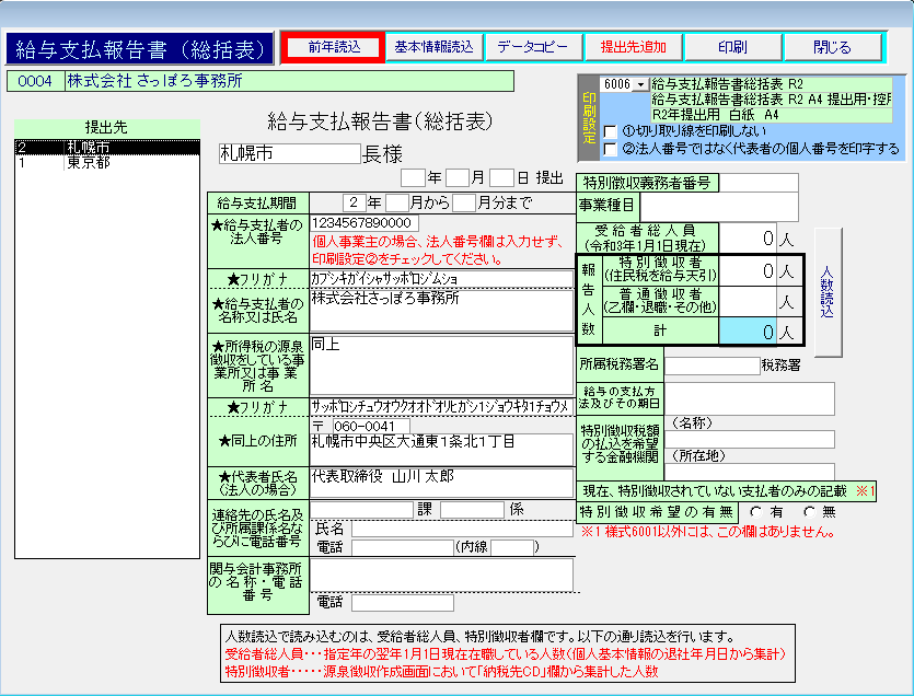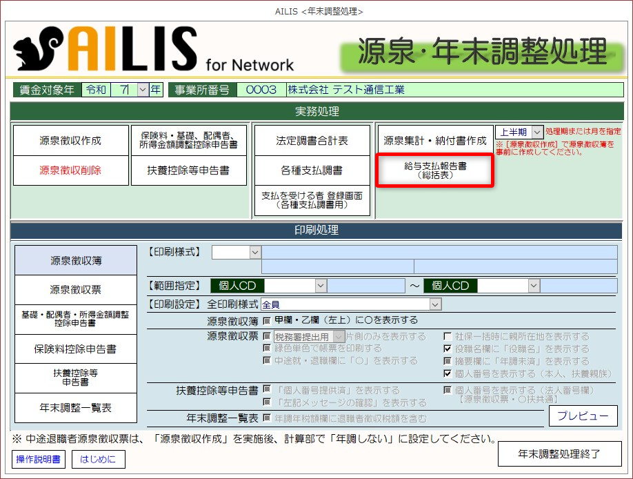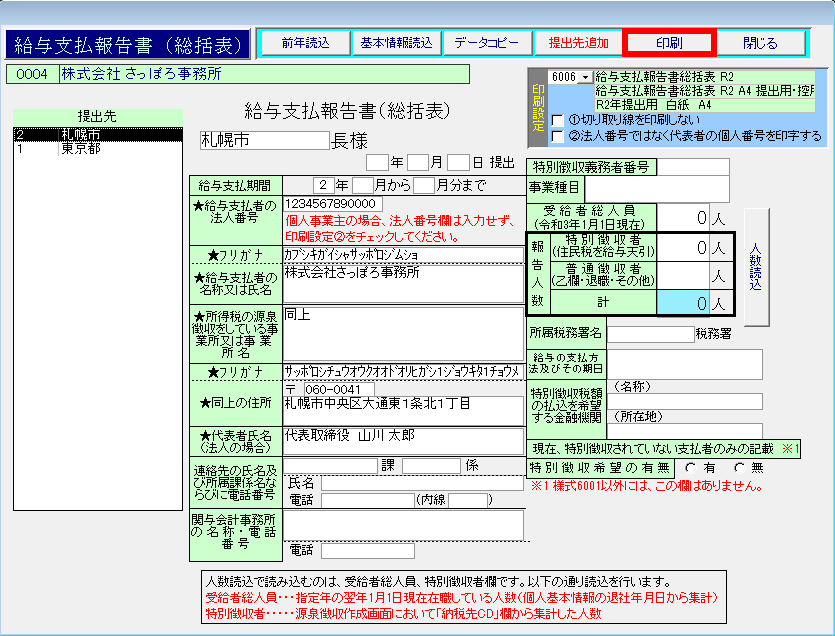 このページでは、給与支払報告書(総括表)の作成と印刷方法について紹介します。