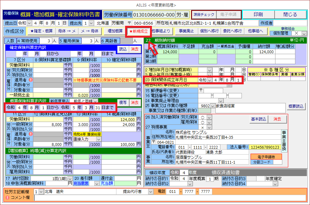 ②作成区分[★新規成立]を選択します。