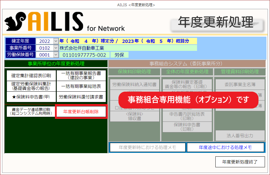 このページでは、年度更新処理で作成したデータの削除方法を紹介します。