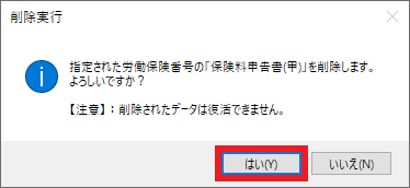 ※[申告書のみ削除]にチェックした場合、[保険料申告書(甲)]のデータのみ削除します。