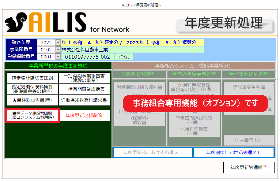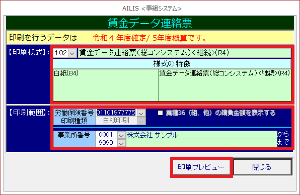 このページでは、賃金データ連絡票の印刷方法を紹介します。※本処理は、総コンシステムを利用している場合に必要な処理です。