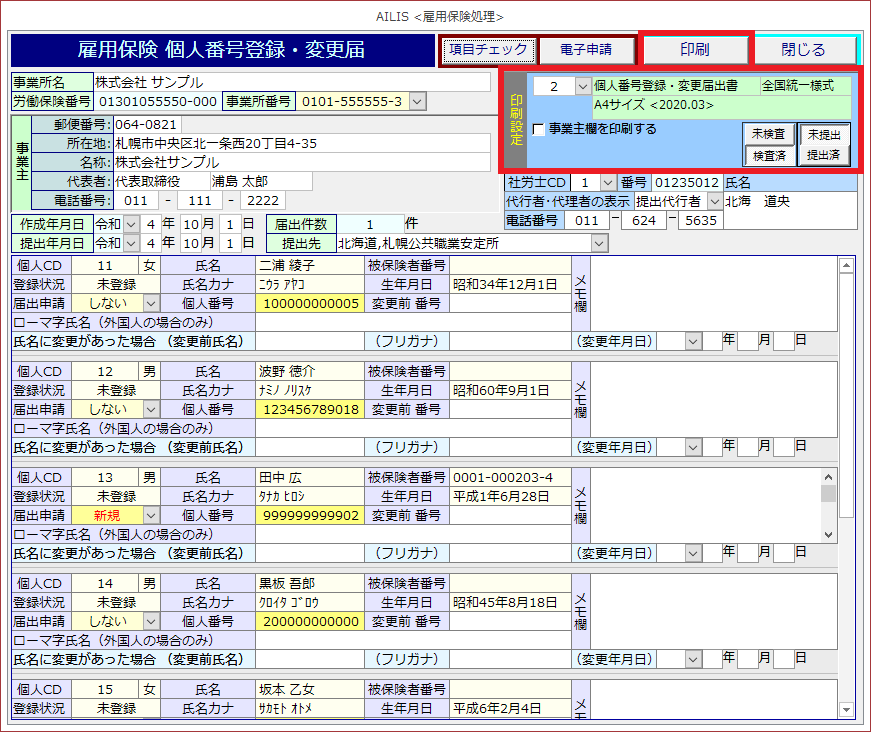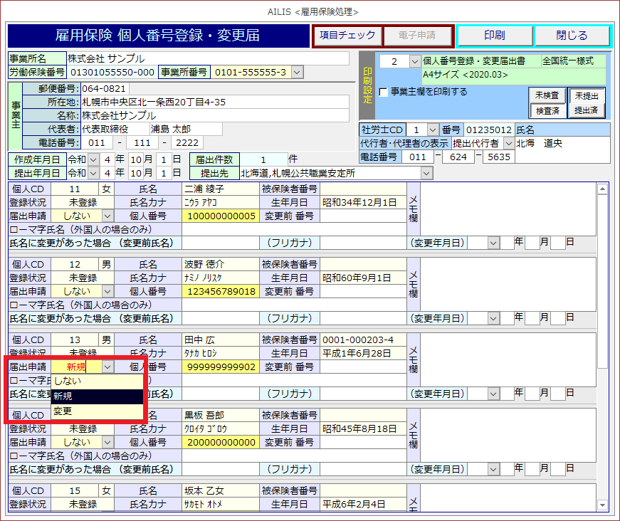 このページでは、個人番号登録・変更届の入力・印刷・電子申請方法の手順を紹介します。