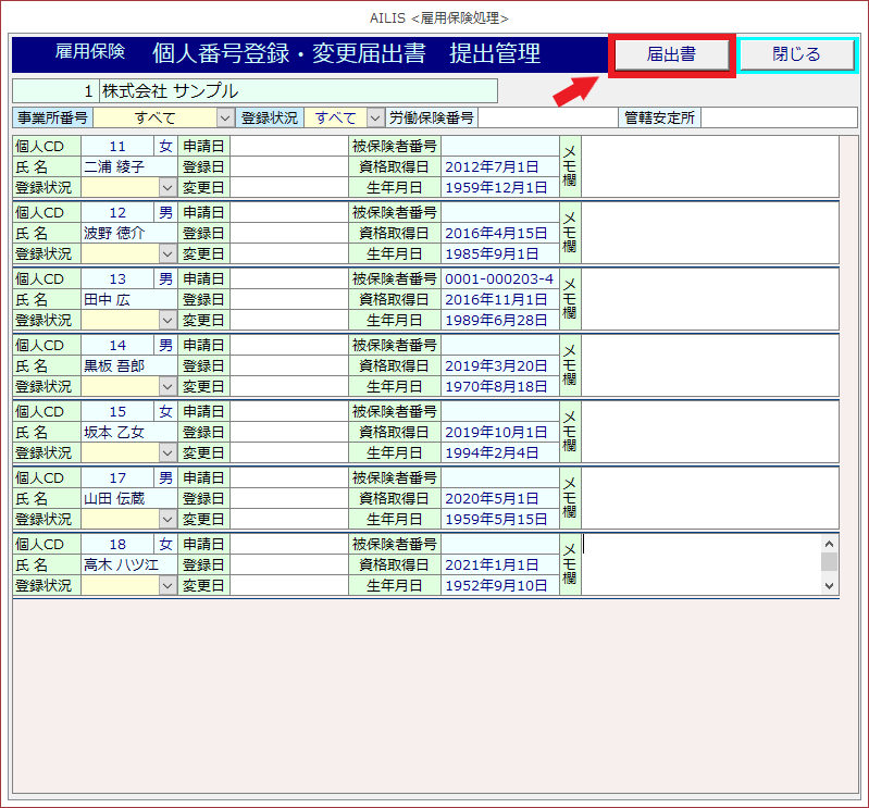 ※[届出申請]欄が[しない]の方は、届出データに含まれません。