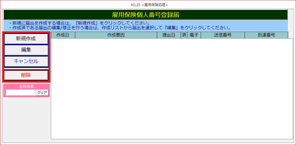提出画面では申請日・登録・変更日と備考を記録できますので、必要に応じてご利用ください。