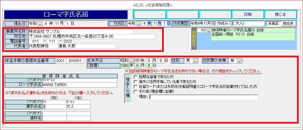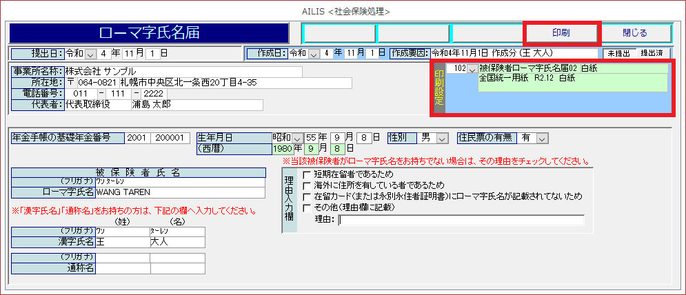 このページでは、厚生年金保険被保険者ローマ字氏名届の入力・印刷方法の手順を紹介します。
