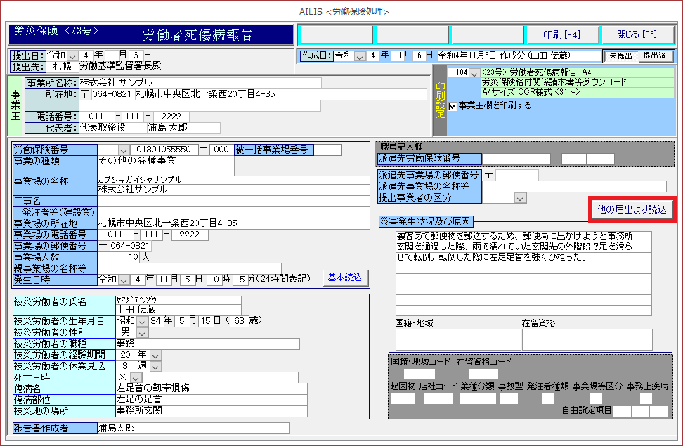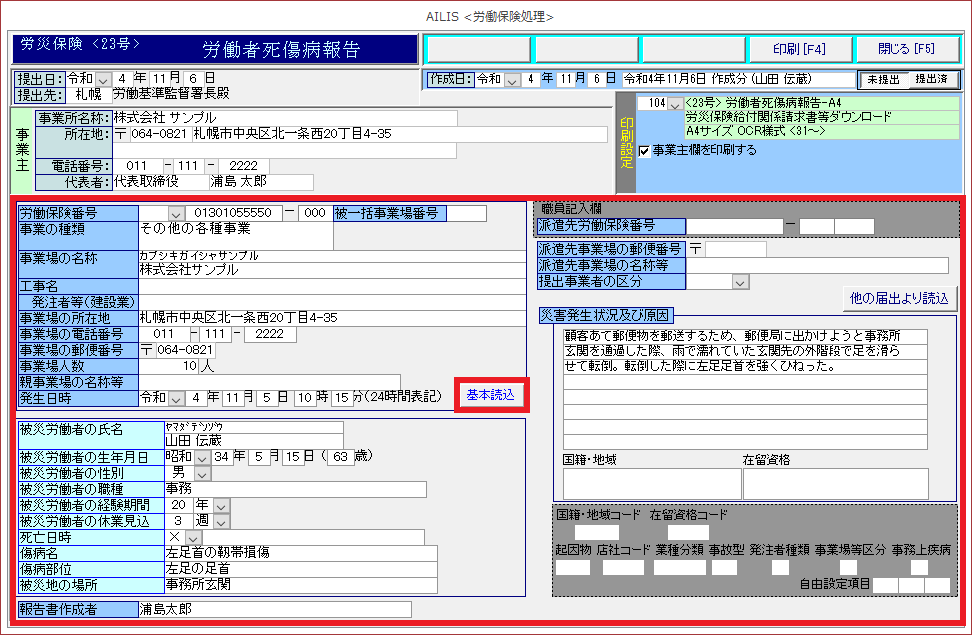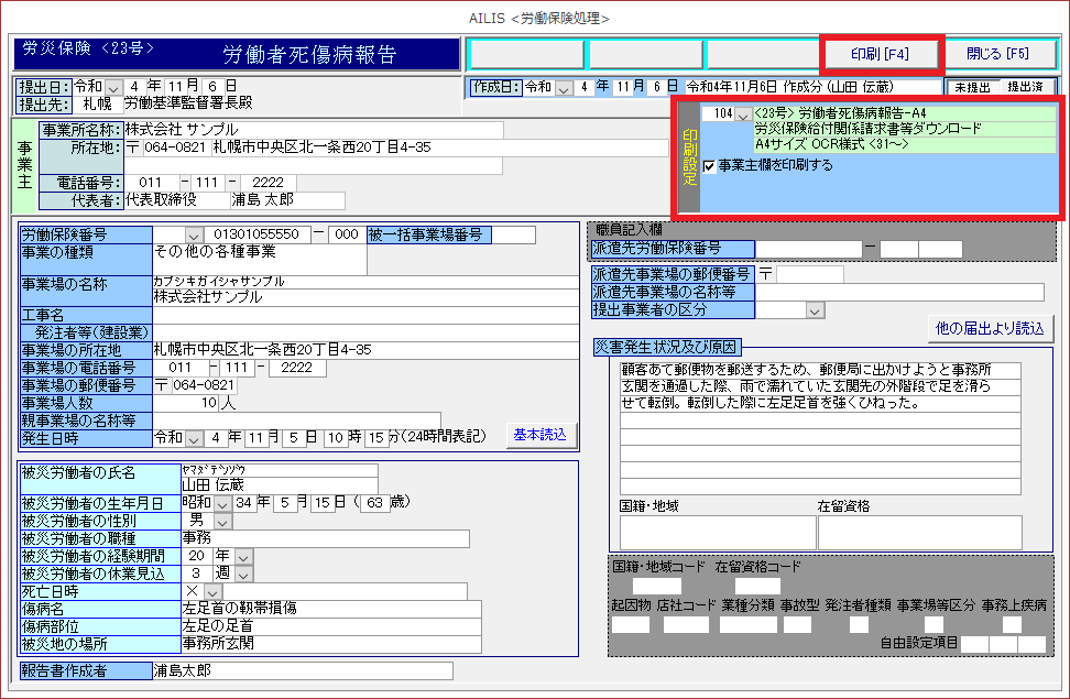 このページでは、労働者死傷病報告の入力・印刷方法の手順を紹介します。