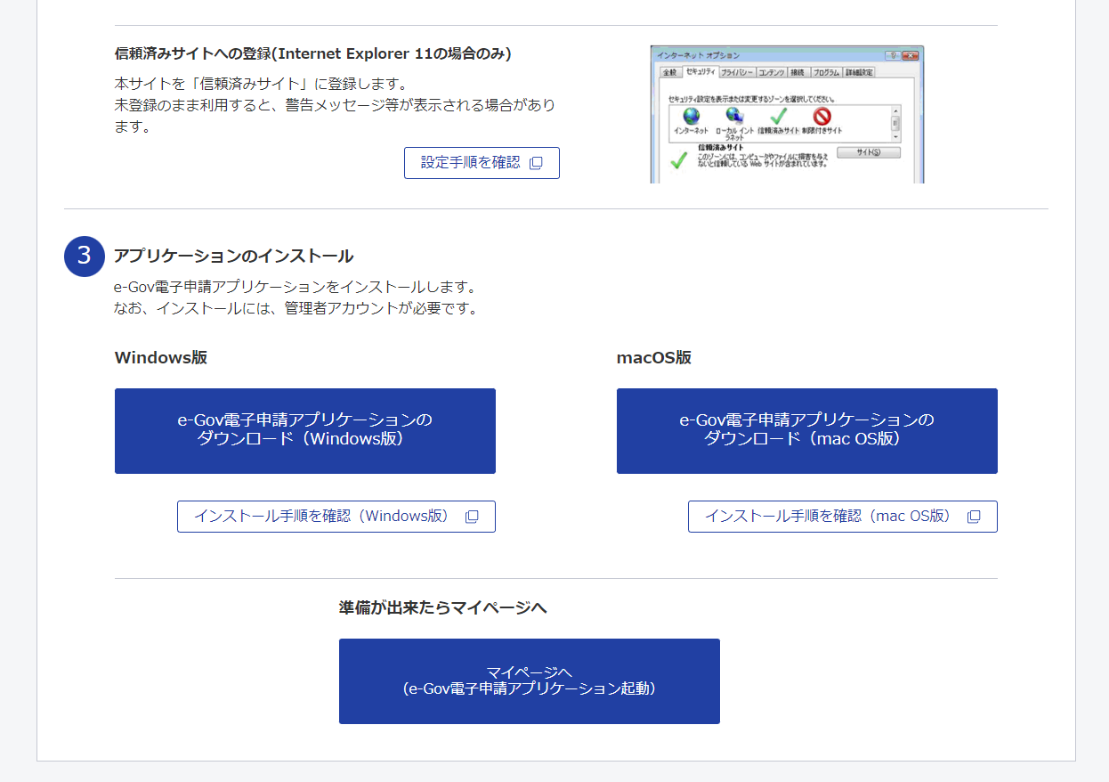 ①e-Gov電子申請アプリケーションを下記ページ内よりダウンロードします。