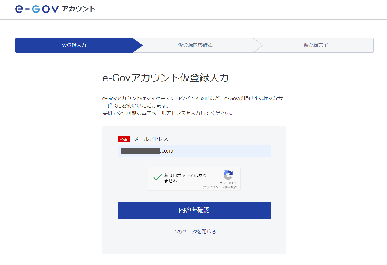 e-Govアカウントは、下記ページから仮登録・本登録することで取得できます。