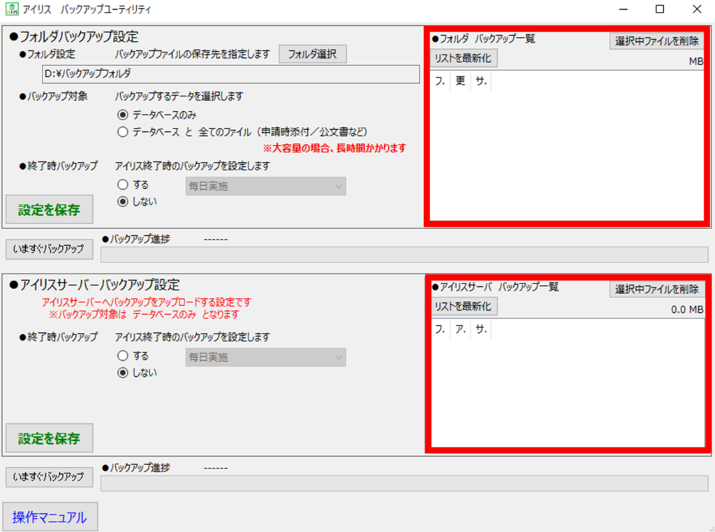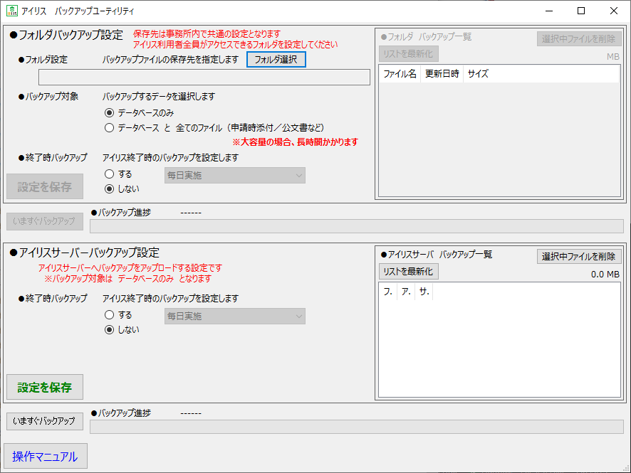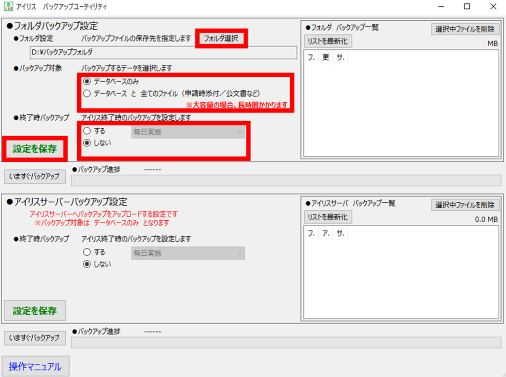 ※アイリスを運用しているPCにバックアップデータを保存することはお勧めしません。