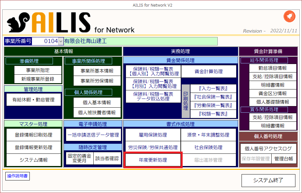 年度更新処理の操作につきましてはこちらをご覧ください。