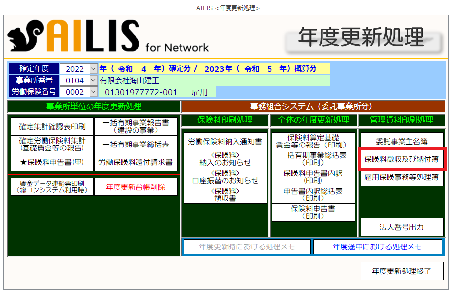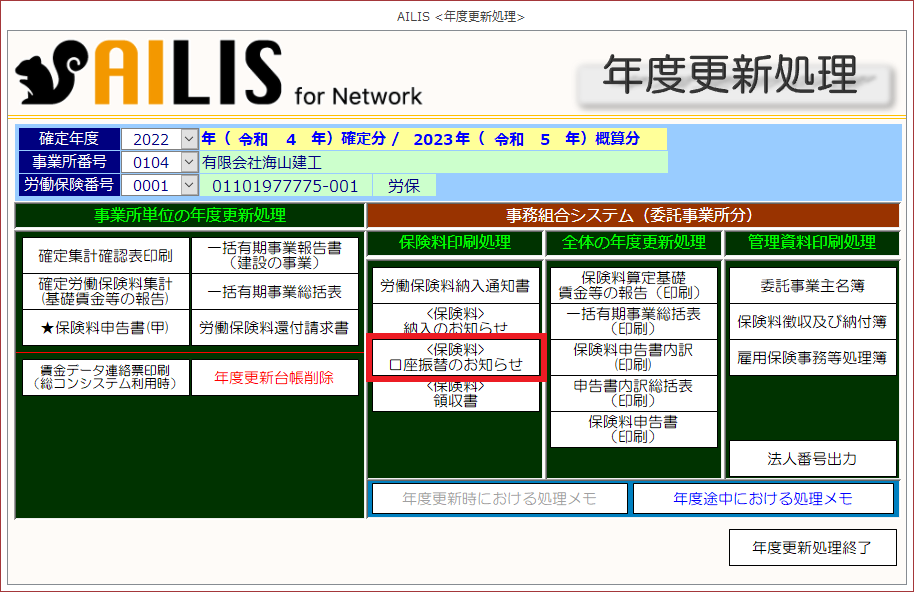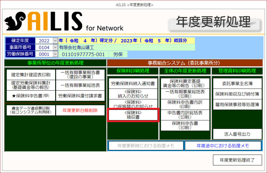 [年度更新処理]の事務組合システム(委託事業所分)における保険料印刷処理を紹介します。