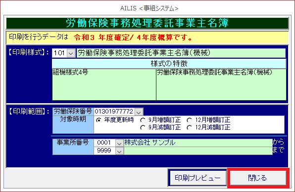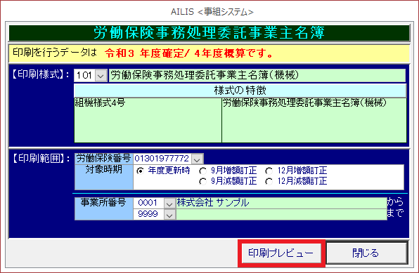 労働保険事務処理委託事業主名簿の様式を印刷する場合に利用します。