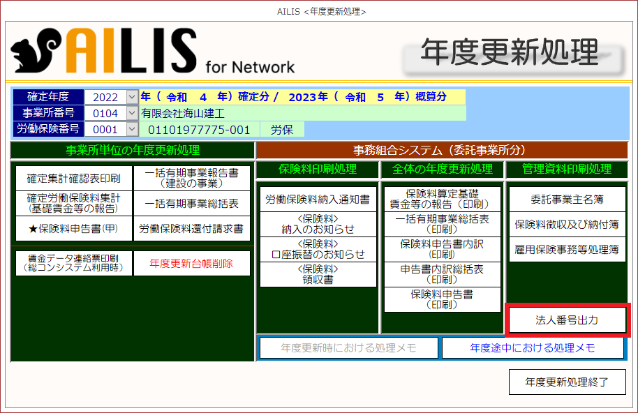 ②[法人番号出力]を選択します。