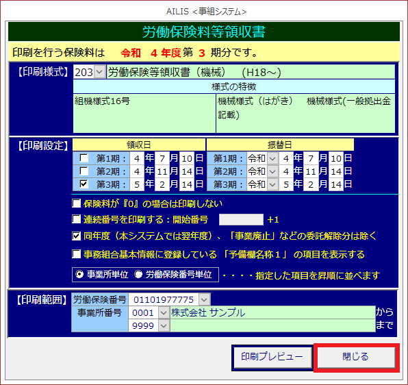 労働保険料等領収書の様式を印刷する場合に利用します。