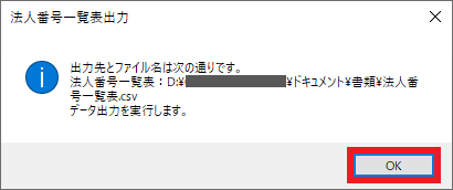 ⑤法人番号一覧表出力画面の内容を確認し、[OK]を選択します。